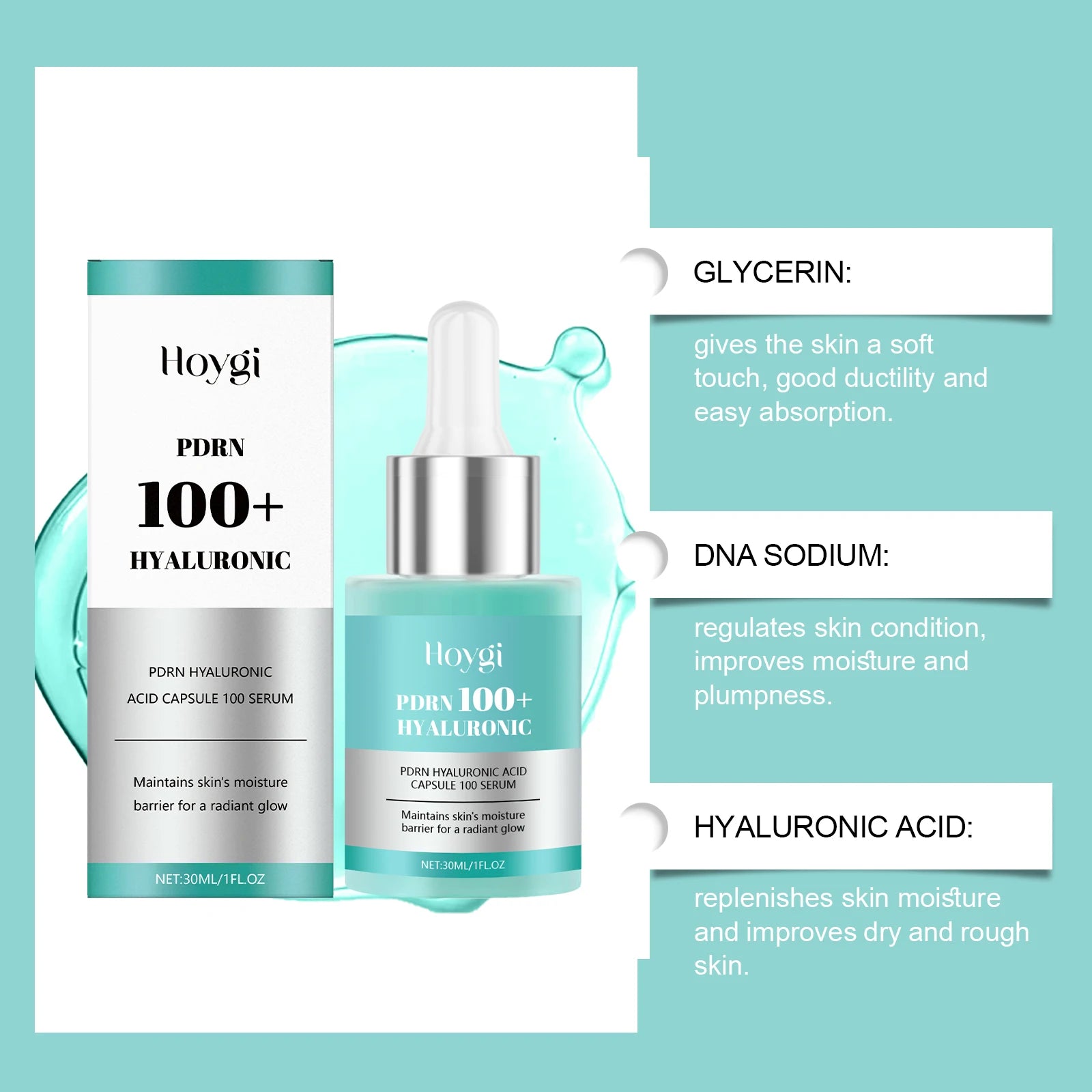 2.Lightweight Fast-Absorbing Texture. Non-greasy serum penetrates quickly to deliver intensive hydration; Suitable for daily use under makeup or as a base layer.