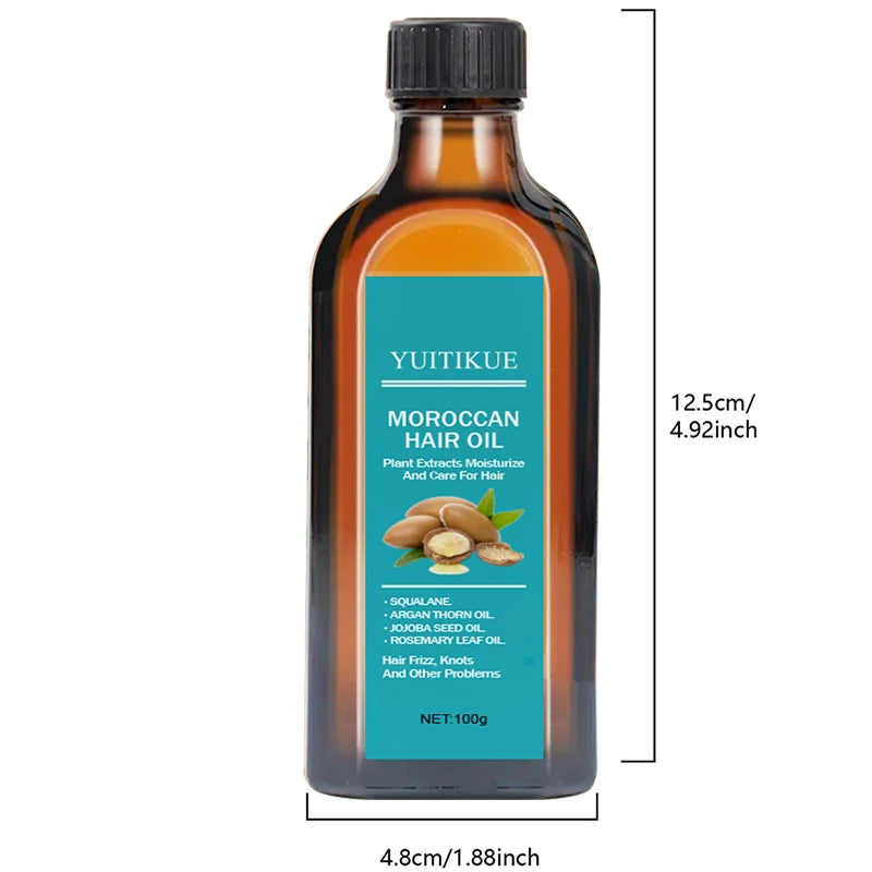 Moroccan hair oil, plant extracts used for hair repair and care, addressing frizz, tangles, and other issues.